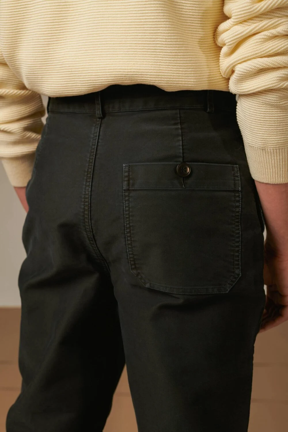 Made from 100% cotton moleskin, manufactured by the same workshop in France for over 100 years. Moleskin, with its tightly woven satin weave, is renowned for its exceptional resistance. These pants are machine-washable at 30°C and can be hung to dry on a line after being reshaped.