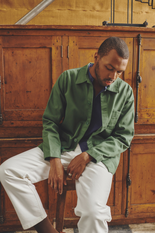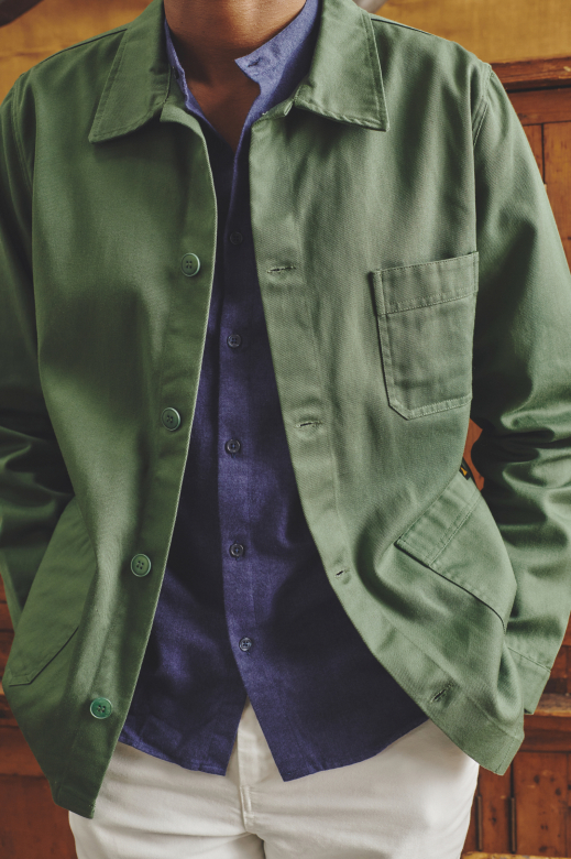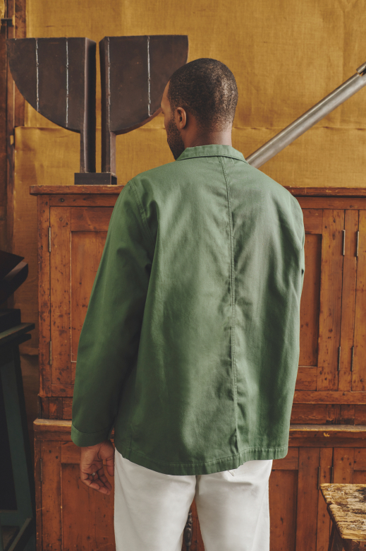 Cette veste revisite avec caractère l’héritage du vêtement de travail, conjuguant savoir-faire et modernité. La version en sergé de coton est une version plus légère que notre veste de travail originale en moleskine.