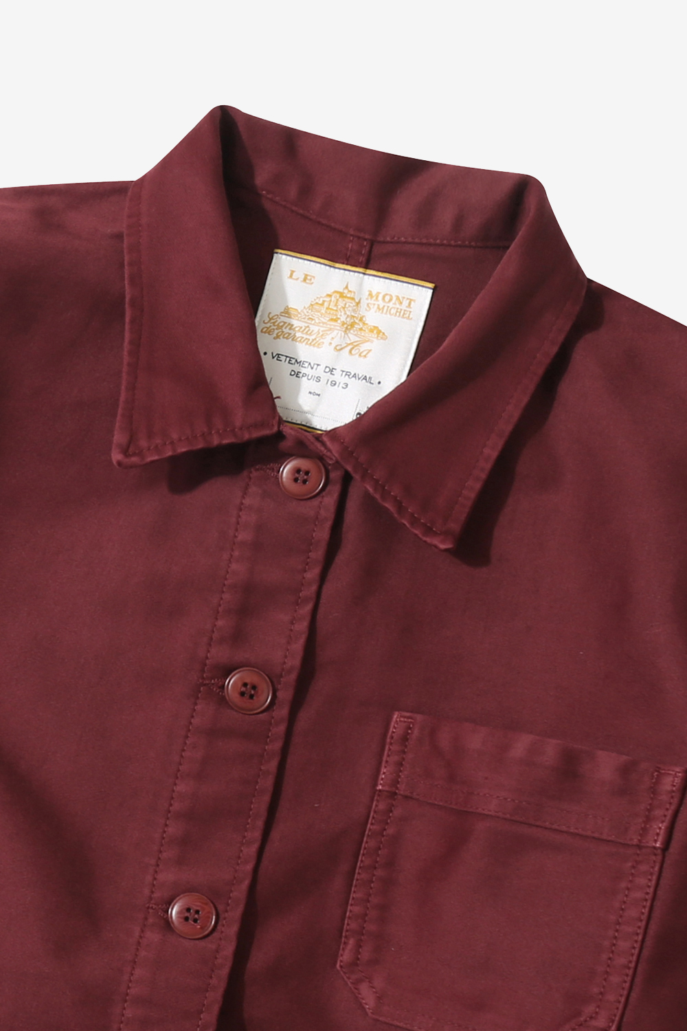 Cette veste revisite avec caractère l’héritage du vêtement de travail, conjuguant savoir-faire et modernité. Son imprimé exclusif, dessiné à la main avant d’être apposé sur le tissu, compose une fresque graphique unique, inspirée de nos slogans historiques depuis 1913 : « Inusable », « Résistant », « Authentique ». Nous apprécions tout particulièrement la puissance évocatrice de ces mots, témoins d’un siècle de tradition et d’excellence, qui incarnent l’âme du Mont Saint Michel avec nostalgie et authenticité.
